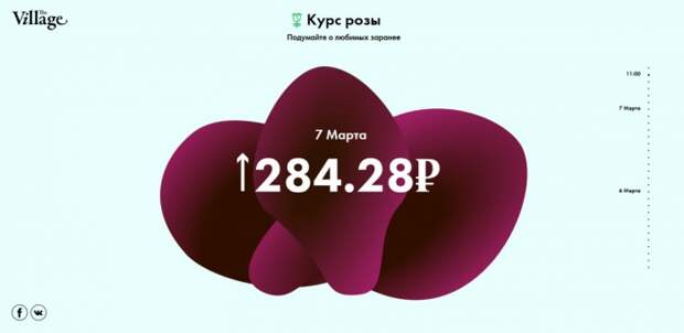 В преддверии 8 Марта Leo Burnett Moscow и The Village запустили проект «Курс розы», который позволяет отслеживать онлайн, как меняется стоимость одной розы в цветочных магазинах Москвы.